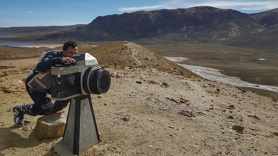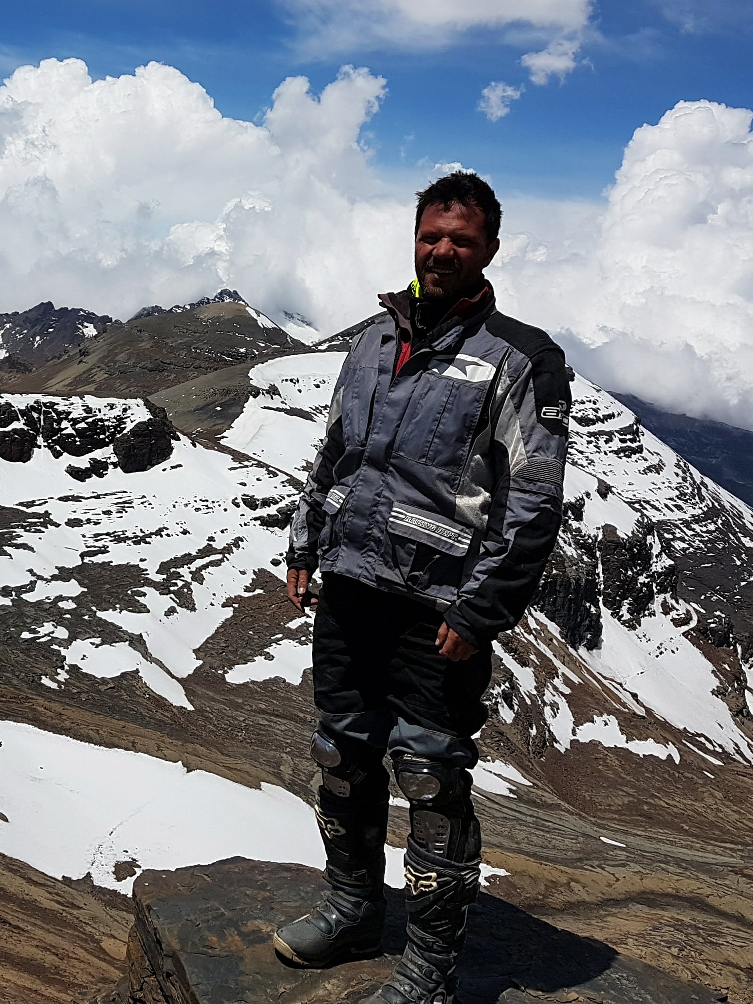 At some point, we leave the bikes and hike up to a nearby peak. The ascent is only 1,600 ft, and the summit just shy of 18,000 but boy, what a hike. The sun is baking, my motorcycle boots feels made of lead. And yet, despite the heat, there’s plenty snow and someone has made a snowman along the trail ;) As we stand at the top, the panorama around is breathtaking - La Paz in the distance, blue lagoons, multi-colored ones and, towering above us at 21,000 ft, the snow covered peaks of Illimani and Huayna Potosí. Of course, I didn’t bring any sunscreen and I will feel it the day after.